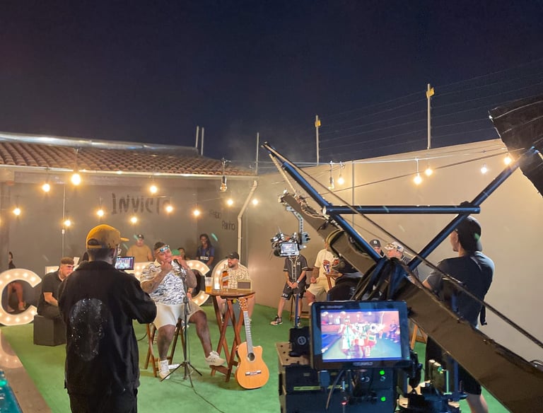 Produzimos videoclipes profissionais com direção criativa e qualidade audiovisual, fortalecendo a imagem do artista e ampliando o alcance do seu lançamento.
